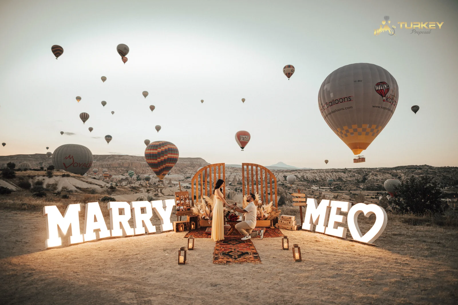 Whether you arrive at your secret location by horseback or classic car, we ensure every detail is flawless. As Şemsiye Organization, with over 20 years of expertise and recognized as Turkey’s Best Marriage Proposal Organization Company in 2022, we turn your dreams into reality. Join our happy couples and let our expert decoration teams and professional photographers capture your unique proposal in Cappadocia.